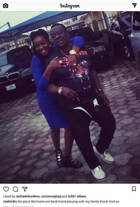 Comic actor John Okafor aka Mr Ibu shared the lovely photo with his wife and thanked God for having to spend time with his family.