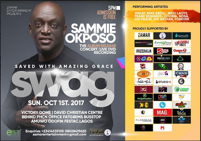 From the stables of Zamar Entertainment presents The Album Release Concert/Live DVD Recording of “SAMMIE OKPOSO’s SWAG” (Saved With Amazing Grace).